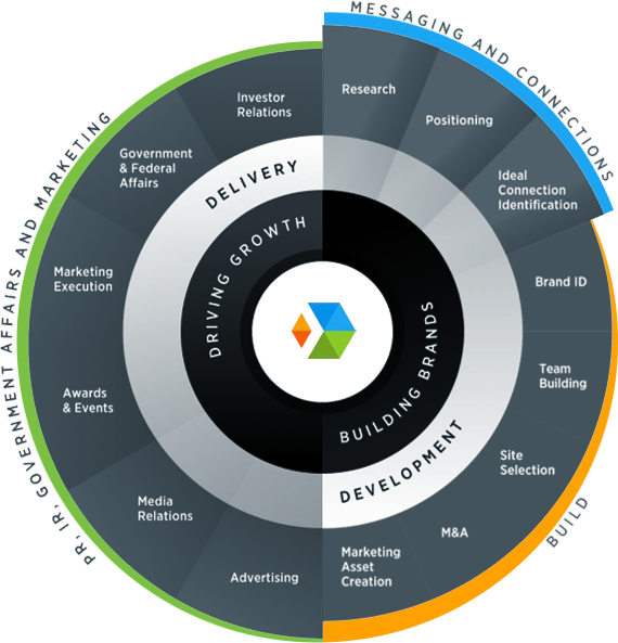 By truly understanding our client’s goals, key milestones, potential areas of risk, ideal customer and investor targets, partner profiles, and other key drivers, we create messaging and strategy that goes beyond traditional brand awareness to meet mission objectives. As a full service firm, we work across all the areas in the graphic.